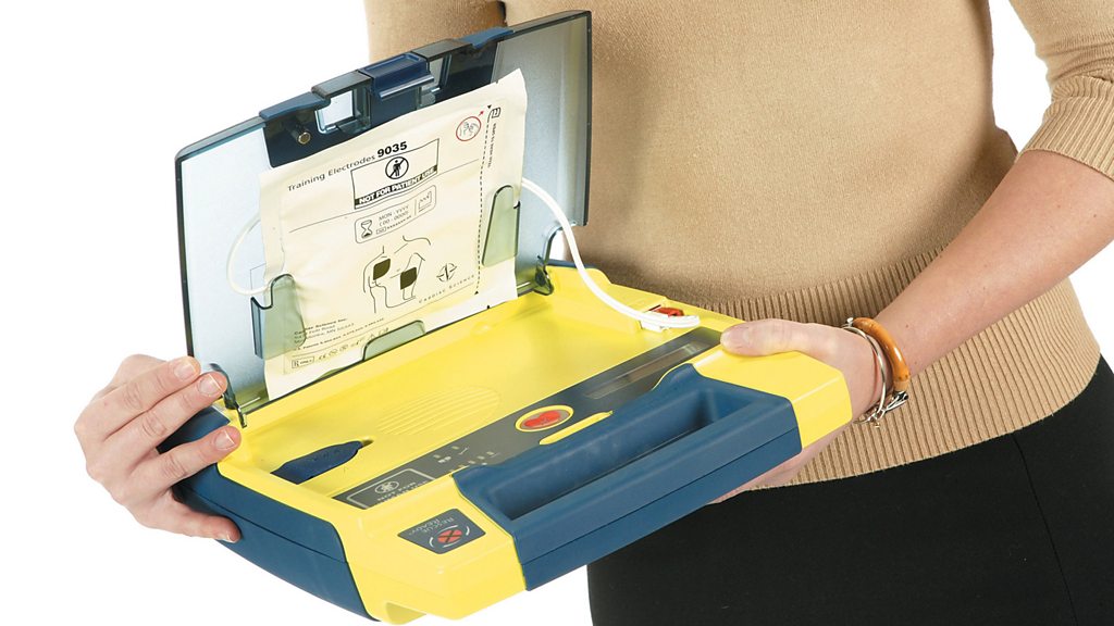 Defibrillators should be used every time someone has a cardiac arrest but actually only get used in 2-3% of cases. Whilst you perform CPR and alert the emergency services, someone else should always be running for the nearest defibrillator. Inside Health's Dr Mark Porter demonstrates just how simple it is to use one. Image: Defibrillator. Credit: British Heart Foundation.