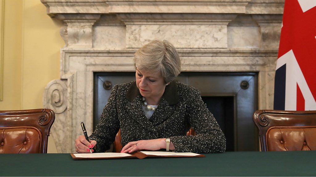 In this special edition of Brexit Watch, Dan goes to 'Brexit Central' - Boston in Lincolnshire - on the day the UK officially starts its departure from the EU. (IMAGE: The Prime Minster Of the United Kingdom Theresa May Signs Article 50 - Christopher Furlong - WPA Pool/Getty Images)