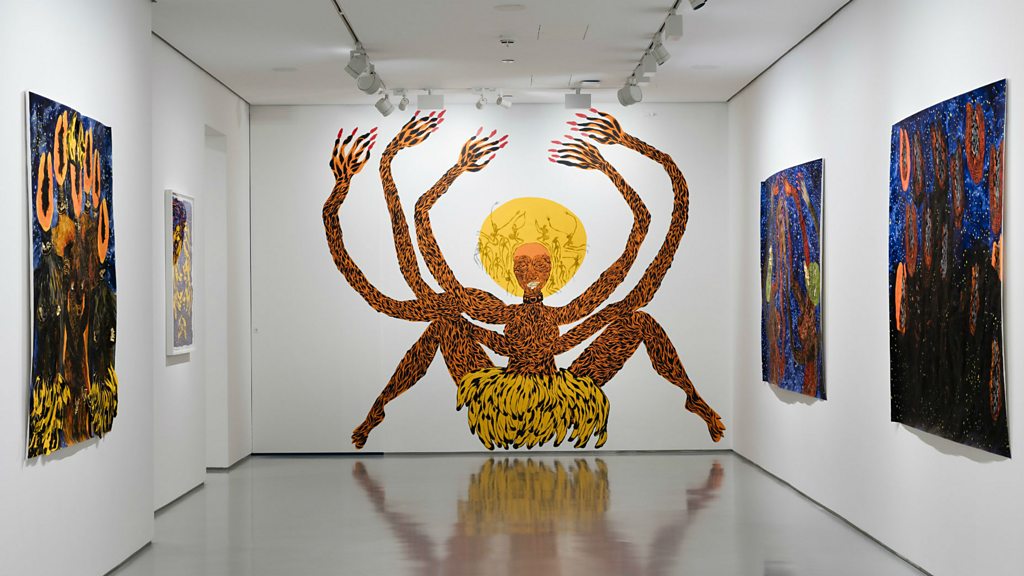 South African visual artist Lady Skollie explains the painting technique and how her clumsiness has shaped her artistic style. Image: Lady Skollie's mural for Lust Politics at Tyburn Gallery, London. Copyright the artist, courtesy Tyburn Gallery. Photo Credit: Batandwa Alperstein