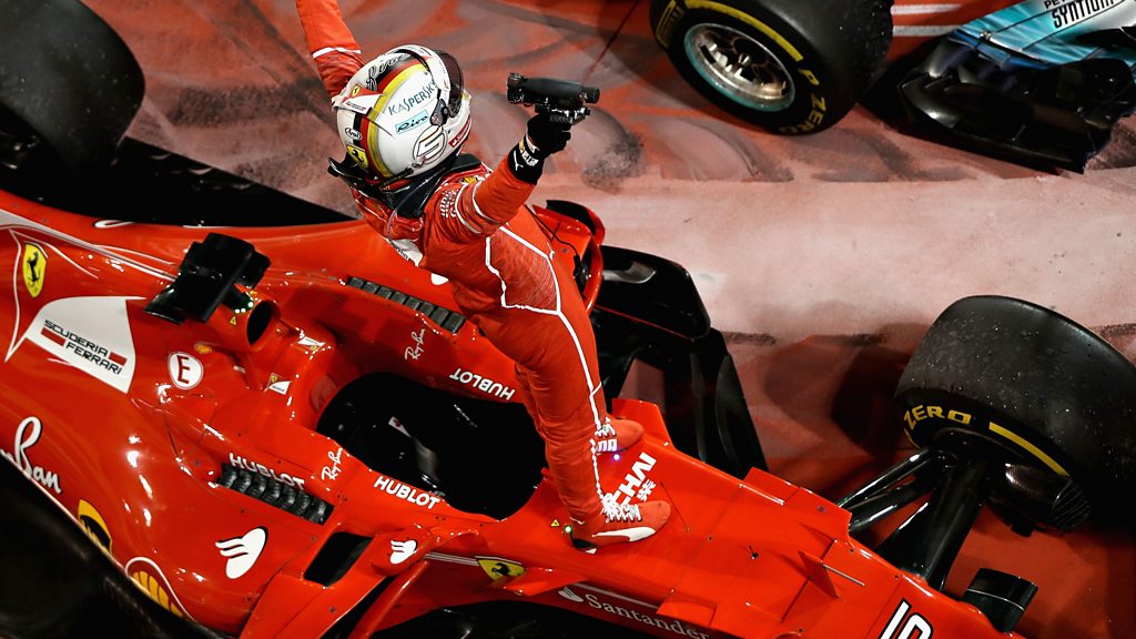 Ferrari's Sebastian Vettel takes victory at the Bahrain Grand Prix, to extend his lead in the world championships. This clip is originally from 5 live Formula 1 on Sunday, 16 April 2017.