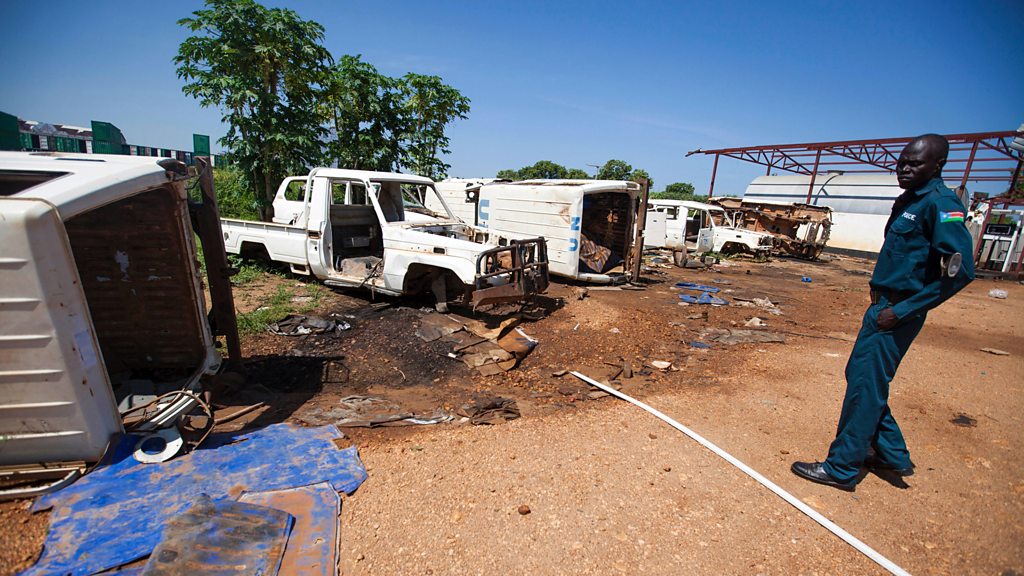 **Some viewers may find parts of this report difficult to listen to** “Hiding in the bathroom. They’re trying to break down our door. We maybe have about five minutes.” Juba, capital of South Sudan, 11 July 2016. The female aid worker sending this message was among a number of international and local staff taking refuge behind a bullet proof door in the housing compound where they lived. Tensions were running high in South Sudan’s three year civil war and government troops had gone on the rampage attacking the compound. As the soldiers tried to break down the door, the terrified group frantically appealed to United Nations peacekeepers based just over a kilometer away. Using their phones and sending messages via Skype and Facebook their calls for help went unheeded. In the hours that followed, one South Sudanese journalist was murdered in an execution style killing. At least five women were raped. It was one of the worst attacks on aid workers in the civil war. South Sudanese troops also attacked civilians next to the UN HQ in the days after 11 July. Some of these attacks - including rapes - reportedly took place within sight of peacekeepers. The UN Secretary General subsequently ordered a special investigation. It found that a lack of leadership on the part of key senior Mission personnel culminated in a chaotic and ineffective response to the violence. The BBC’s Tomi Oladipo reconstructs the events of 11 July, speaking to those who survived the attacks, witnesses to the violence and members of the UN mission. He pieces together the events of the day using these accounts as well as the messages sent requesting help. He asks what lies behind the UN’s repeated failure to act in cases like this. Producer: Rob Walker (Photo: A police officer examines the remains of the logistic base of the United Nations (UN) organisation World Food Program (WFP), Jebel district, Juba. Credit: Albert Gonzalez/AFP/Getty Images)