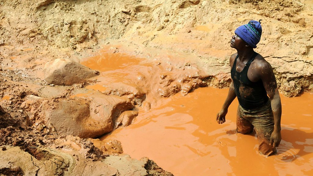 Are gold and other minerals still hotbeds of banditry, theft and bribery in the DR Congo? And is it getting worse as the country's postponed presidential election looms? Presenter Ed Butler hears the allegations of Congolese gold mine owner and presidential candidate Emmanuel Weyi. He also speaks to Sophia Pickles of the NGO Global Witness, who says she has been threatened with arrest because of her work uncovering a guns-for-gold deal in the country. Plus, the BBC's Laurence Knight reports on weaknesses in the systems supposed to control the sourcing of another mineral in Congo - the obscure metal tantalum. (Picture: Man stands in a pool of water in a gold mine in north eastern Congo; Credit: Lionel Healing/AFP/Getty Images)