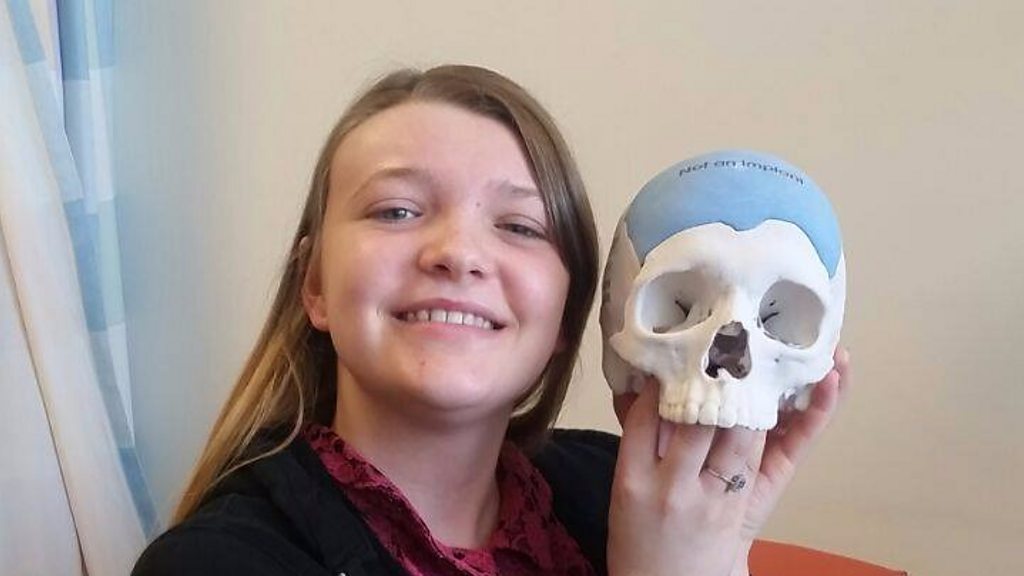 Tiffany Cullern was diagnosed with a rare tennis-ball-sized tumour which was eating into her brain. To replace the piece of skull removed with the tumour she now has a 3d-printed implant in her skull.