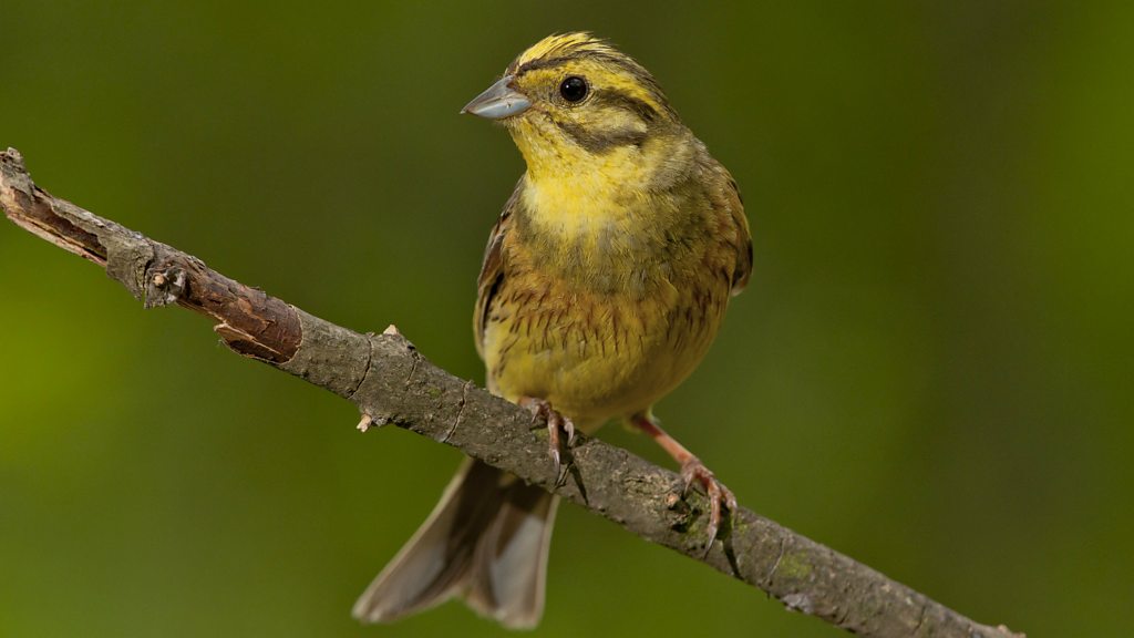 The Yellowhammer is one of the few birds to have had its verse transcribed into words and it’s often recorded as: ‘little bit of bread and no cheese’! They are the closest looking bird we have to a canary with the male’s brilliant yellow head and the female’s softer green one, and in flight they both show their white outer tail feathers and chestnut rump.