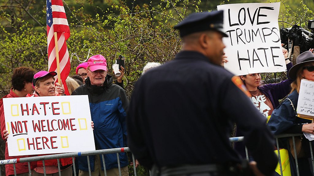 President Donald Trump has pledged to chase what he called the ‘bad hombres’ out of America. One of the organisations the President is targeting is the notorious Mara Salvatrucha gang, better known as MS-13 whose members deal in drugs, human smuggling and underage prostitution. They aggressively recruit young Latino immigrants in U.S. cities and suburban communities and have recently been responsible for a number of shockingly brutal murders, including the killing of two teenage girls with machetes and baseball bats. Lucy Ash travels to Long Island in New York and to Maryland to investigate. She asks what impact such crimes have on the heated debate about illegal border crossings and she asks if tougher immigration policies will really make America safe again. (Photo: Protesters gather outside a venue where Attorney General Jeff Sessions speaks about a recent spate of gang related killings in New York. The violent street gang MS-13 has been blamed for 11 deaths in Central Islip. Credit: Getty Images)
