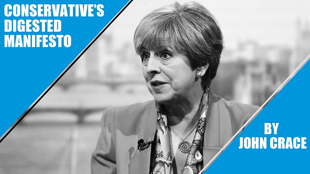 The Guardian's satirist John Crace's comic take on the Conservative manifesto. First broadcast on PM, 18 May 2017.