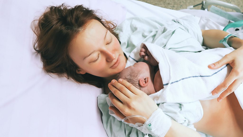 Holly Dunsworth of the University of Rhode Island explains why women giving birth today might have it tougher than ever. (Image: Mother and new born baby. Credit: Getty Images)