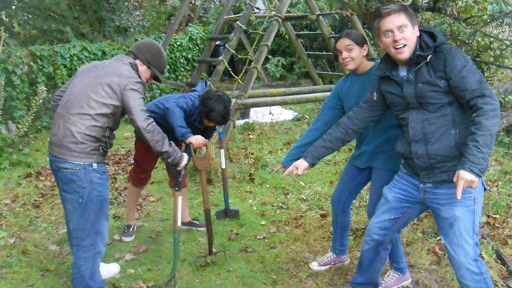 Dick and Dom and helpers compete to see who can attract the most worms of out the ground, using two different techniques.