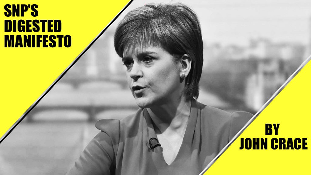 The Guardian's satirist John Crace's comic take on the SNP manifesto. First broadcast on PM, 30 May 2017.