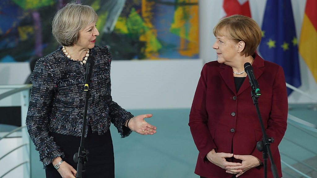 Sebastian Borger, London Correspondent for Berliner Zeitung, says Angela Merkel would prefer a Conservative majority, despite not being a friend of Theresa May. (Picture: Theresa May (L) and Angela Merkel (R). Credit: Getty Images)