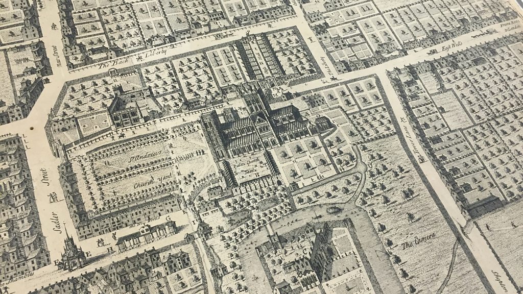 Esther Hoyle from the South West Heritage Trust explains how Wells was mapped from 1735. Image: Somerset Archaeological and Natural History Society