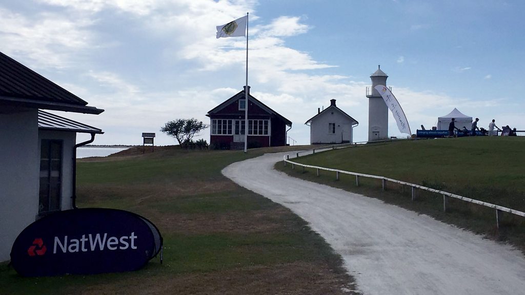 Derek a' còmhradh ri Bryan Geddes, manaidsear air sgioba goilf nan Eilean Siar