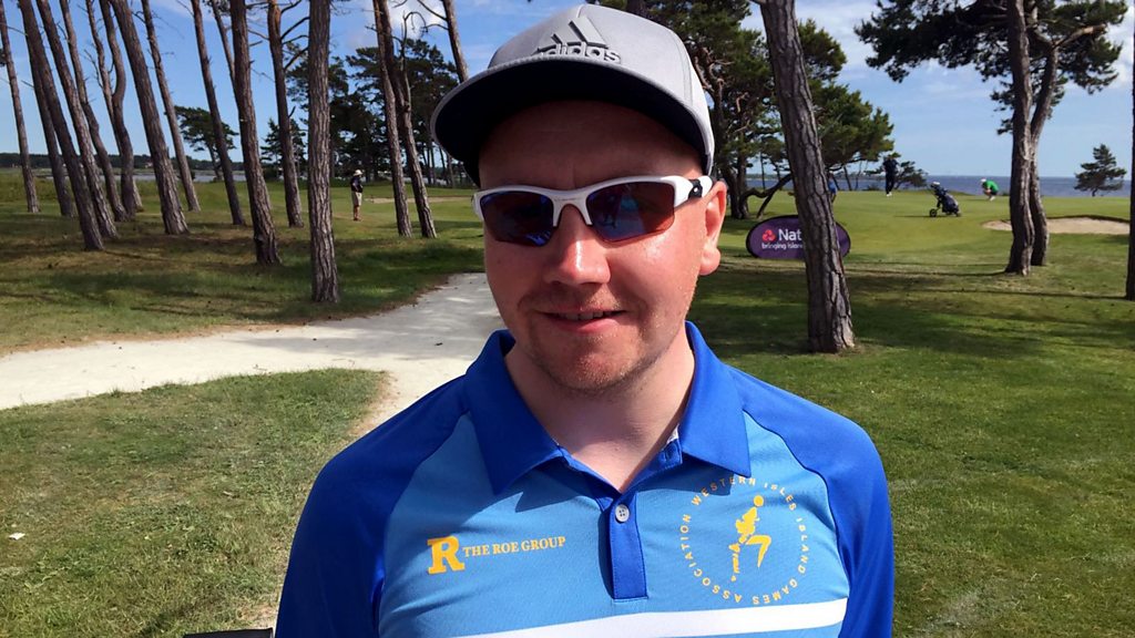 Derek a' còmhradh ri David Black a tha a' cluiche do sgioba goilf nan Eilean Siar
