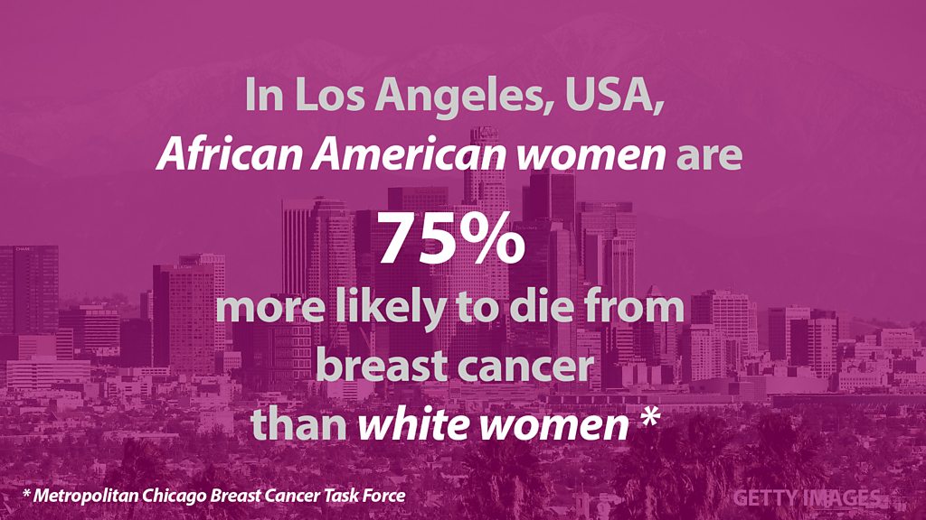 'When our people are diagnosed with breast cancer, the first thing they think of death' - Miss Loretta Jones, Healthy African American Families. What causes such a large disparity of death rates between white women and African American women when it comes to breast cancer, in LA - America's second largest city? Dr David Ansell, physician at Rush University Medical Centre in Chicago, Miss Loretta Jones from Healthy African American Families, breast cancer surgeon Dr Heather Macdonald and Gina, a radiographer, share their views. Photo: Quote from the Breast Cancer Task Force Credit: back image of Los Angeles - Getty Images