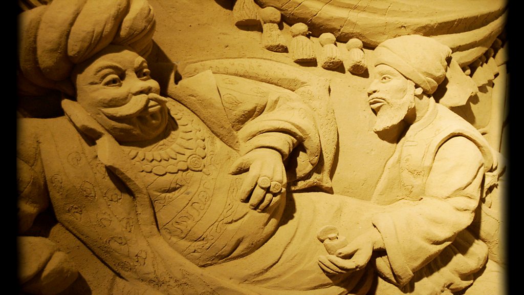 The One Thousand and One Nights are a collection of fantastical stories of flying carpets, magic and genies whose ancient origins go back to the 7th century or earlier. The tales are told by Scheherazade who uses the power of storytelling night after night to stop her Sultan husband from beheading her ... These highly influential stories were brought to the West in the 18th century, when more tales like Aladdin and Ali Baba were said to have been added by the French translator, and it has continued to evolve over the centuries. Rajan Datar and guests explore why these stories became so popular around the world and what they mean to us today. Joining Rajan is Wen Chin Ouyang, Professor of Arabic at SOAS in London; Dr Sandra Naddaff, senior lecturer in Comparative Literature at Harvard University; and the Iranian TV producer Shabnam Rezaei. Photo: Sand Sculpture depicting 1001 Nights of Sheherazade. (Getty Images)