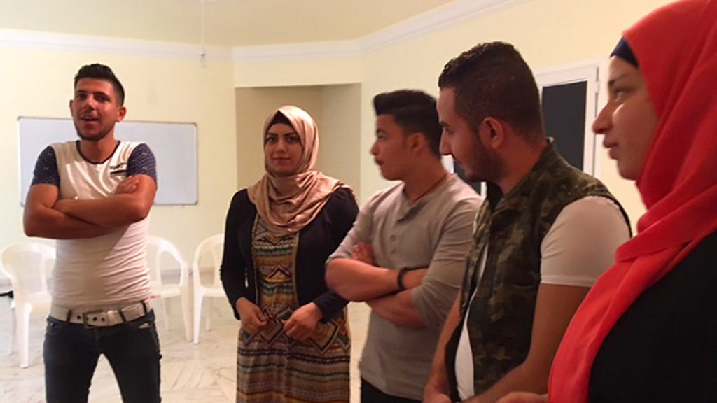 Two years on from the height of the so-called migrant crisis, BBC OS travels to five cities in five days hearing first-hand from Syrians building new lives in Europe and the Middle East. In Lebanon, the BBC's Lina Sinjab meets refugees facing discrimination and uncertainty, and hears about their attempts to tackle this through drama and other creative arts. (Produced by Karnie Sharp. Photo: Young Syrian refugees at Action for Hope, Credit: BBC)