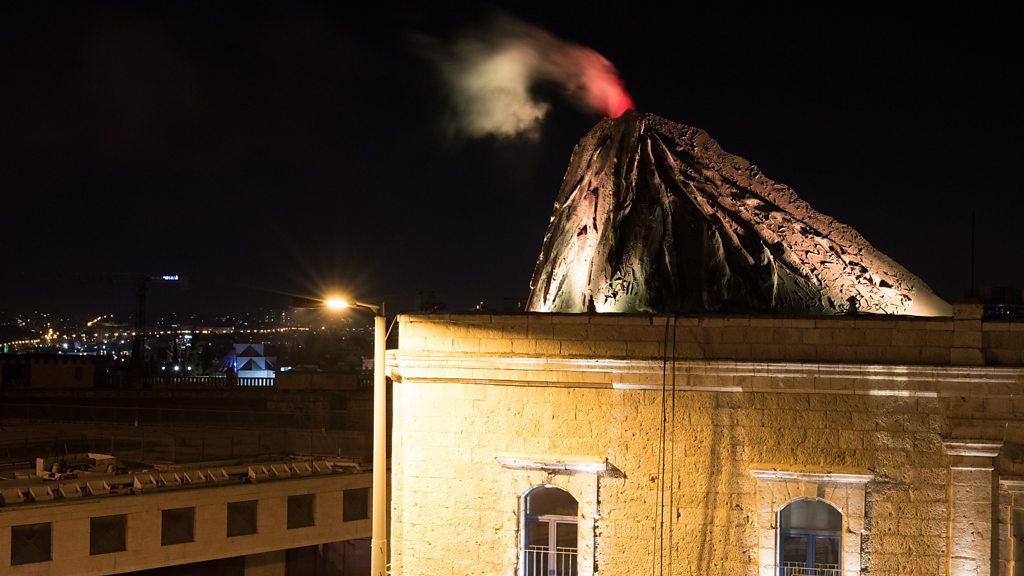 Itay Mautner is Artistic Director of Mekudeshet, Jerusalem’s season of arts and culture. One of his projects is Above and Beyond, art installations on the rooftops of the city, including a huge papier-mâché volcano billowing smoke. Image: Volcano Above and Beyond Credit: Youval Hai