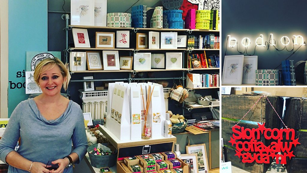 Nia, perchennog y siop yn siarad am ganghennau eraill Bodlon, a gwerthu llyfrau dramor