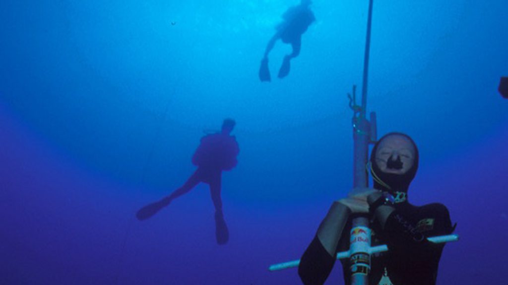 Having experienced a blackout before the dive began, and narcosis as she reached the depths, free diver Tanya Streeter and her safety adviser John Garvin describe events as she attempted an ascent from the depths of 160 metres, on just one breath of air. Photo: Tanya Streeter underwater Credit: Phil Shearer