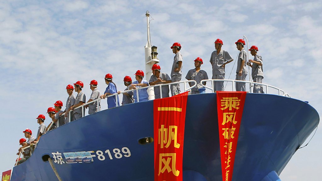 Bonnie Glaser, from the Centre for Strategic and International Studies, says that countries in South East Asia are realigning from the US to China. Image: Staff standing on a Chinese fishing vessel setting sail for the Spratly Islands, 2013 Credit: STR/AFP/Getty Images