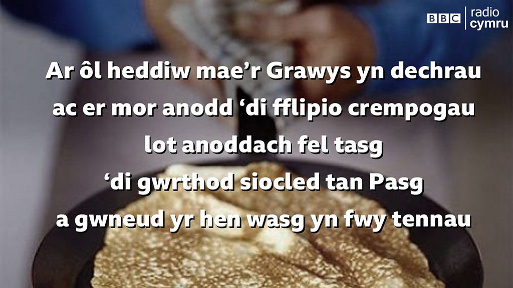 Ar ôl heddiw mae’r Grawys yn dechrau ac er mor anodd ‘di fflipio crempogau lot anoddach fel tasg ‘di gwrthod siocled tan Pasg a gwneud yr hen wasg yn fwy tennau