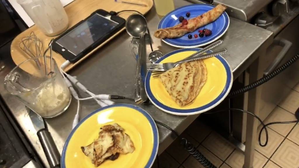 Sasha Twining, Alun Newman and BBC chef Beverley Cowley go head to head in a pancake challenge with commentary from Kris Temple.