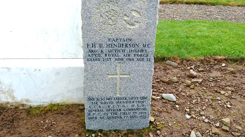 Local historian Tom Barclay and conflict archaeologist, Professor Tony Pollard of Glasgow University, introduce Louise Yeoman to the father of the RAF. In Doune cemetery in Girvan, a single headstone carries two names - father and son. They were Lt. General Sir David Henderson and his only son, Captain Ian Henderson of the RAF. David Henderson was a major pioneer in military aviation, but he also pushed for the amalgamation of Britain’s two rival air services into the RAF. His 21 year old air-ace son survived Flanders, only to be killed, along with another experienced pilot, when a gust of wind slammed their plane into the cliffs near Turnberry. His father threw himself into his work, and in 1919 became director of the League of Red Cross societies, but worn out, he died in 1921 and asked for his ashes to be brought back and scattered on his son’s grave.