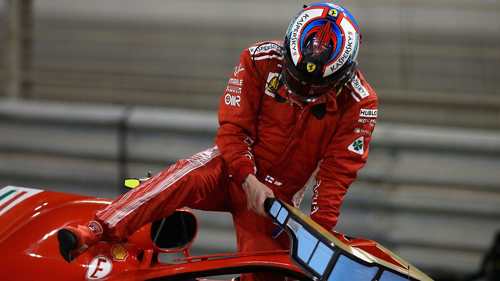 Ferrari's Kimi Raikkonen is forced to retire from the race after an issue during his pit stop. This clip is originally from 5 live Formula 1 on Sunday, 8 April 2018.