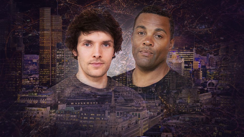 Colin Morgan and Ray Fearon star as Bassanio and Antonio in The Merchant of Venice, set in the 2008 financial crisis.