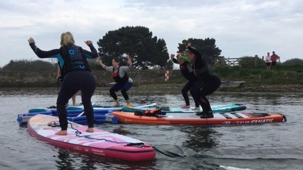 Breakfast Newsreader, Emily Hudson, has a go at paddleboarding.