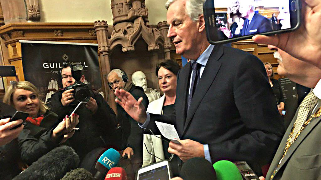 Anna Quigley was at the Guildhall to speak to the EU's chief Brexit negotiator.