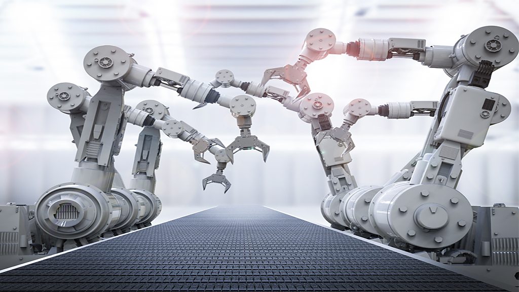 How might manufacturing change in the future? Social scientist Martin Krzywdzinski talks to Bridget Kendall about the 'Fourth Industrial Revolution' and the technological shifts shaping life on the factory floor. Photo: Factory robots (PhonlamaiPhoto/Getty Images)
