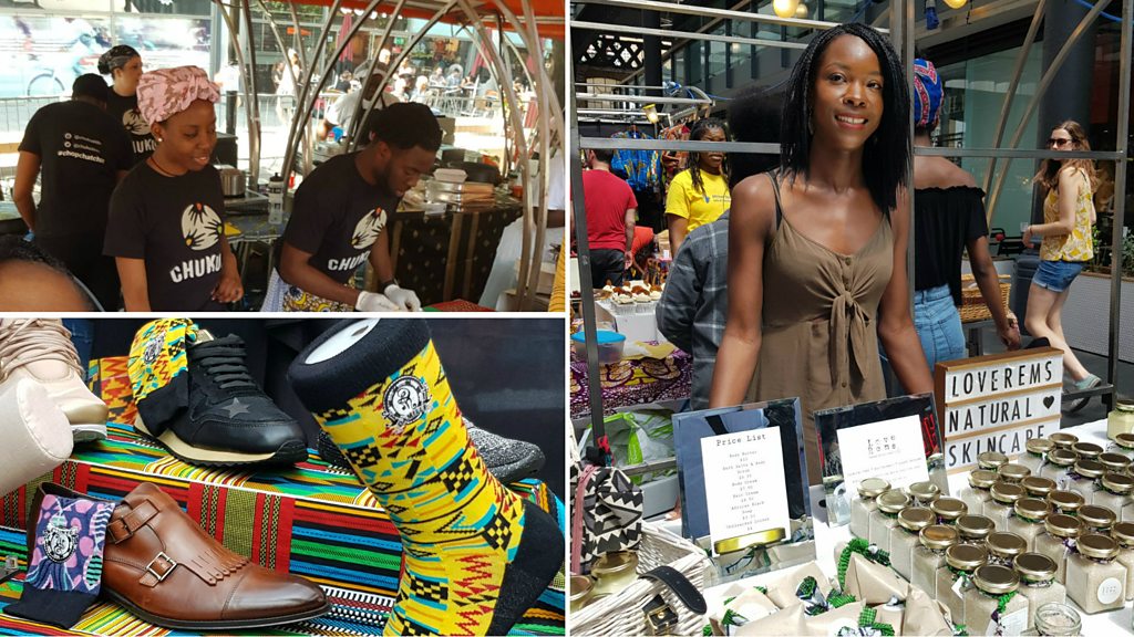 Africa at Spitalfields showcased some of the best cultural delights the continent has to offer this weekend in London. Food, clothes, arts and crafts, and even performing arts were all on show. Focus on Africa's Bola Mosuro went to the cultural festival to sample what was on offer. (Photo: Stall holders and customers enjoying an African market in London. Credit: BBC)