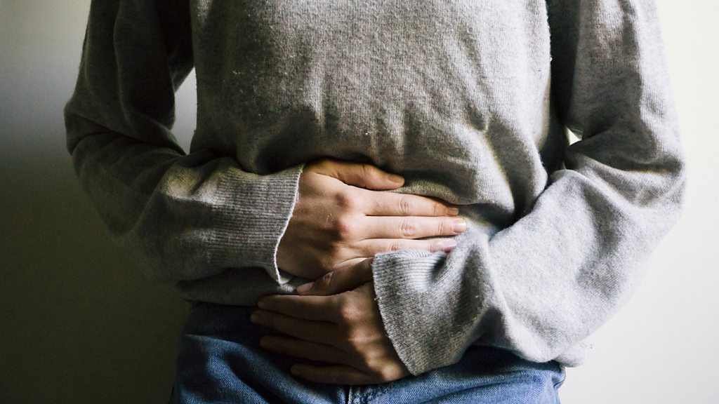 Our microbiome - the vast and diverse array of microbes that live on and in our bodies - drives our metabolism and our health. Prof Rob Knight, from the University of California and Prof Tim Spector, from King's College London in the UK, explain why it is important and reveal one thing you can do to improve it. (Image: Woman holding stomach, Credit: Getty Images.)