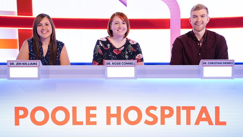 Britain's Best Junior Doctors is a medical themed quiz show hosted by comedian and former mental health nurse, Jo Brand. The programme is part of celebrating the 70th anniversary of the NHS. Jen, Rosie and Christian are the team from Poole Hospital. Born and raised in Poole, Rosie was actually born in the hospital that she now works in, and is currently on rotation in Geriatrics. Jen has three degrees under her belt and a PhD after studying for 12 years. She is currently on rotation in Paediatrics and would like to specialise in haematology. Christian went straight into medical school aged 18. They won their episode, beating Blackpool, earlier this week - and will contest the final on BBC 2 on Friday.