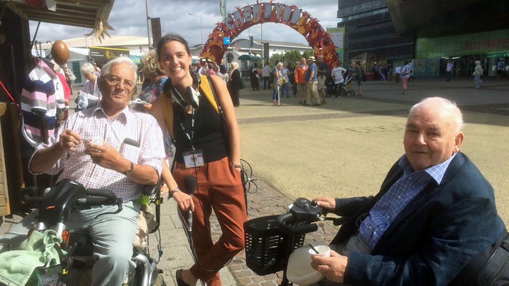 Jac a John o Sir Fôn yn mwynhau hufen ia yn ddyddiol ar stondin Môn ar Lwy