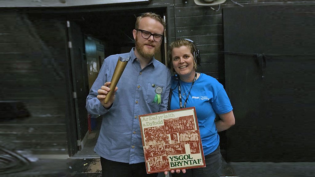 Huw Stephens, Llywydd Yr Ŵyl, ar ôl roi araith arbennig ar lwyfan y Pafiliwn.