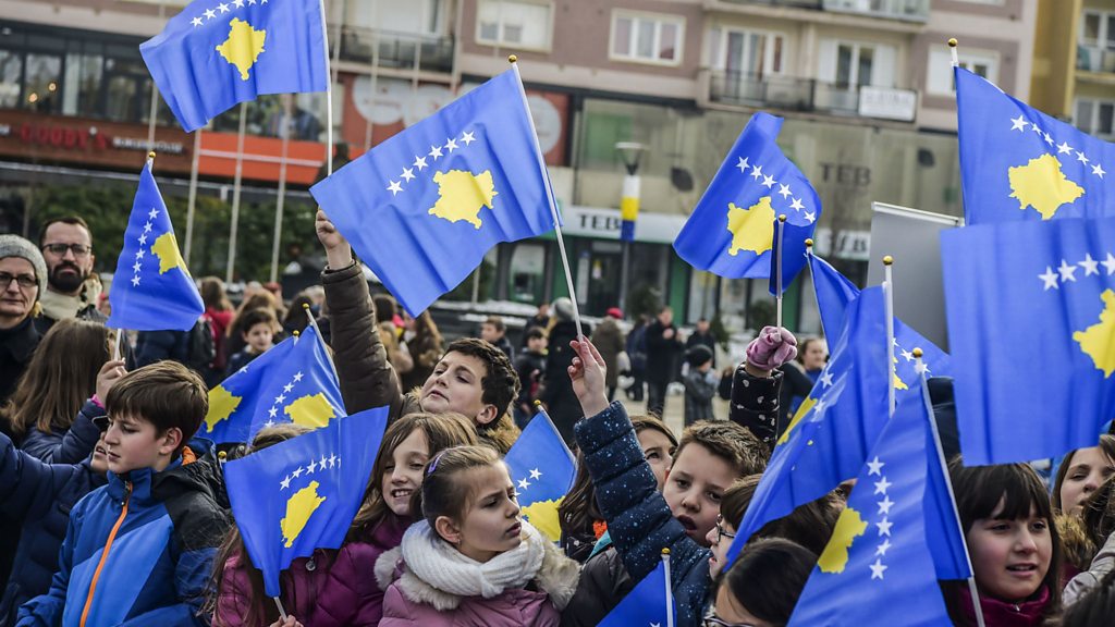 The presidents of Kosovo and Serbia have floated the idea of swapping territory along ethnic lines. The suggestion has raised concerns in the region and beyond. Will the European Union agree to border changes? (Photo: Children in Pristina, Kosovo, wave their country's flag on 13 February 2018 during celebrations marking the 10th anniversary of Kosovo's declaration of independence from Serbia. Credit: Armend Nimani/AFP/Getty Images)
