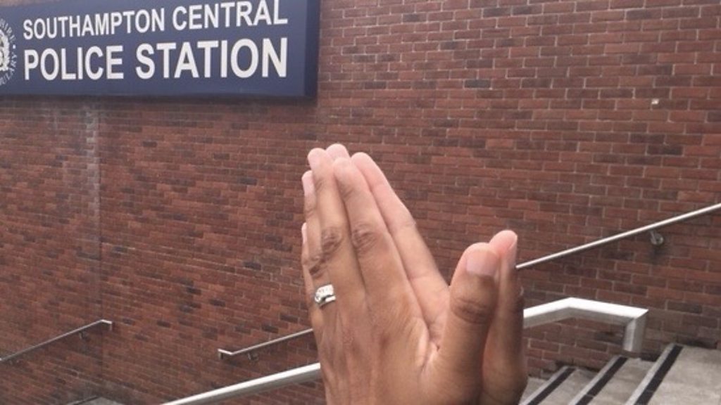 Sarah Bassett talks to PC Jasdeep Kalirai-Thomas at Southampton Central Police Station.