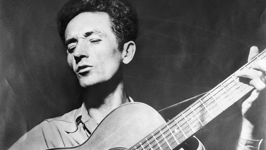 Doug Levitt travels around the US on Greyhound buses, writing songs about the stories he hears. So far, he reckons he's travelled 120,000 miles in the 12 years he's been doing this. What inspired him to take on the challenge in the first place? Photo: Woody Guthrie playing guitar. Credit: Getty Images