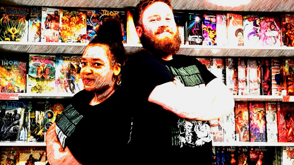 Marvel and DC are the two largest and well-known comic companies. But which side is best? Our comic experts Jack and Kadija go head to head to prove their side is stronger. (Photo: DC lover Kadija (left) and Marvel fan Jack (right) at Forbidden Planet in London. Credit: BBC)