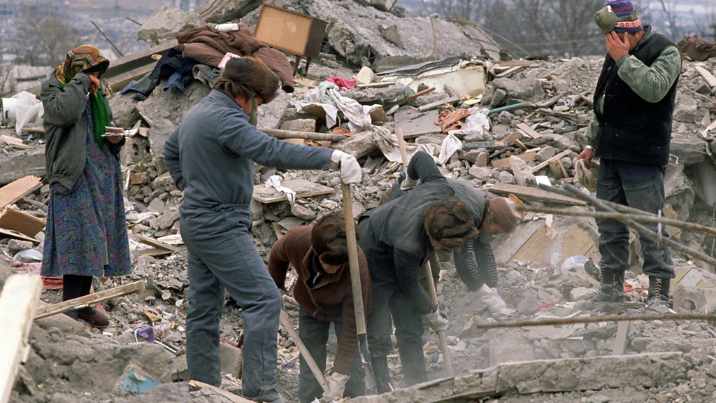A heart-breaking encounter for two UK firefighters as they searched for survivors
