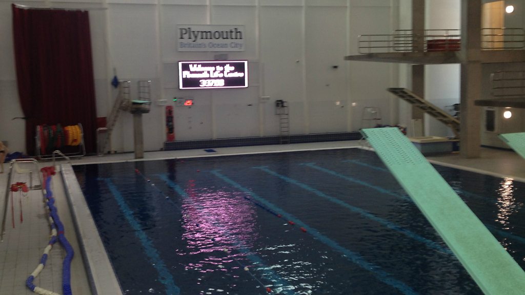 The sounds of the swimmers and divers followed by coaching some young basketball players.