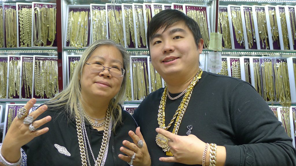 When Eva Sam left Macau to emigrate to New York, she never thought she would become one of the most famous women in Chinatown. Eva and her son William run a shop that supplies jewellery for hip hop royalty, from ASAP Rocky to Beyoncé. Tara Gadomski has the story. Image: Eva Sam and her son William Credit: Tara Gadomski/BBC