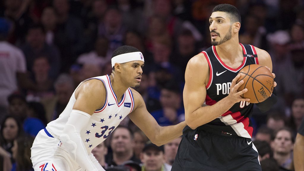 NBA basketball player Enes Kanter is an outspoken critic of the Turkish government. The leadership in Turkey sees him as a supporter of exiled cleric, Fethullah Gulen. Turkish security forces once raided his house in Turkey. As a result, Kanter fears going back to visit his home country. (Tobias Harris #33 of the Philadelphia 76ers guards Enes Kanter #00 of the Portland Trail Blazers in the fourth quarter at the Wells Fargo Center. Credit: Mitchell Leff/Getty Images)