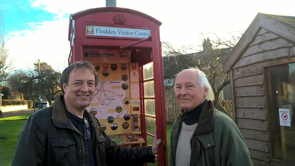 Misha and Clive Hallam-Baker at the battle of Flodden visitor centre