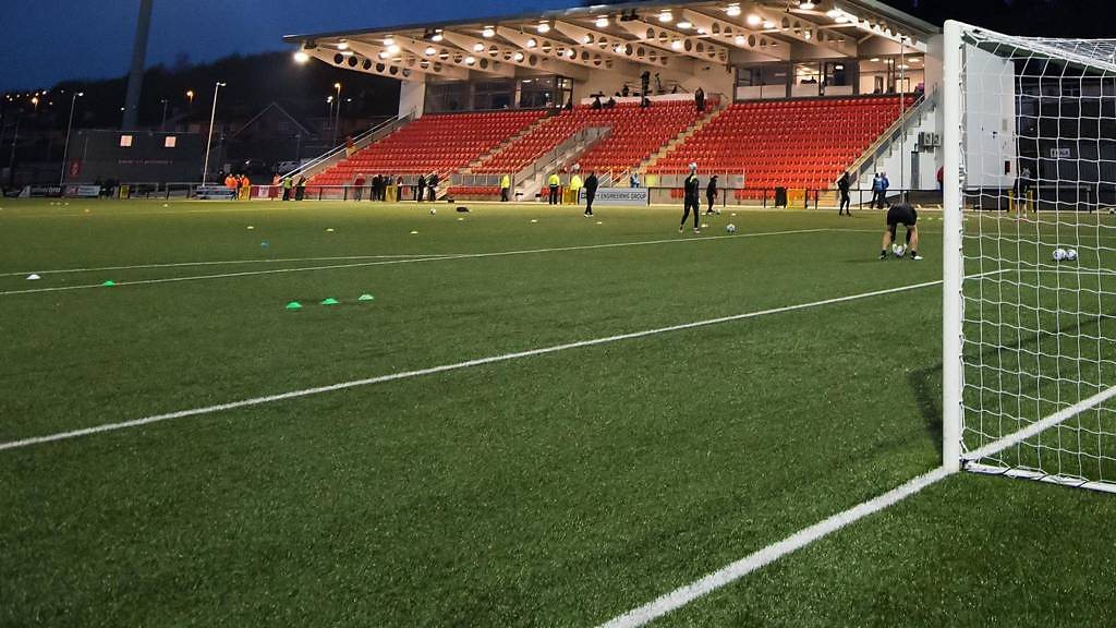 Kevin Deery, Derry City's assistant manager, talks with Eric White after Derry City's victory of Sligo Rovers. Derry won 2-0 at the Brandywell.