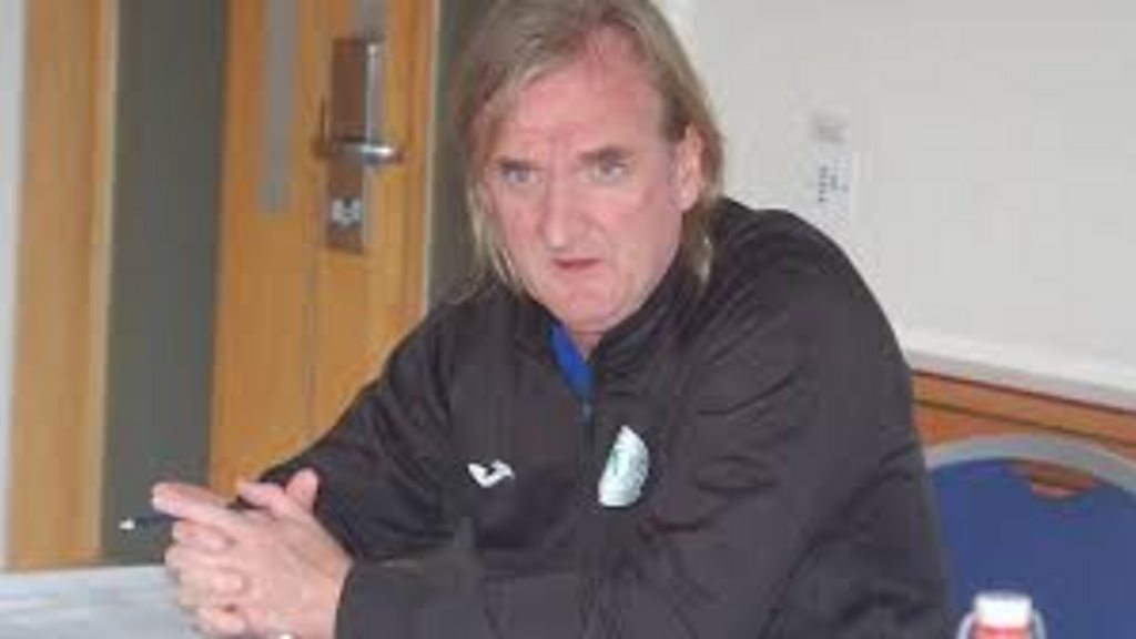 Eric White talks with Ollie Horgan after Harp's defeat to Derry..