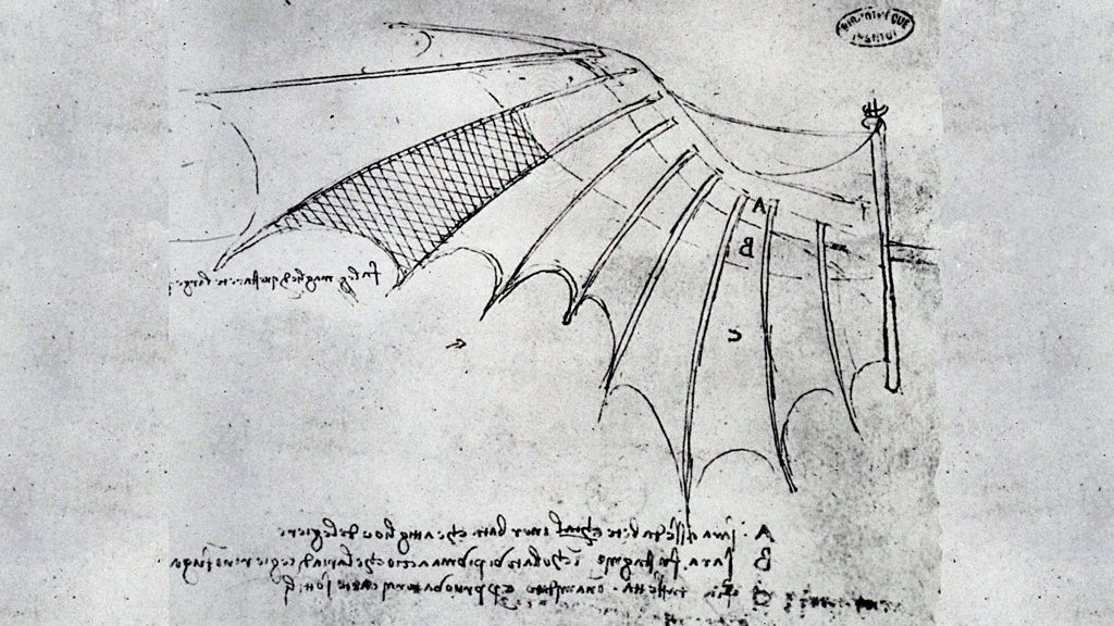 The 15th century Italian artist and all-round genius Leonardo da Vinci combined engineering skills with his understanding of the natural world to design a variety of airborne contraptions. But could any of them have worked? Bridget Kendall speaks to Prof Martin Kemp, Prof Marina Wallace, and Carmen C Bambach. Photo: Diagrams from a notebook by Leonardo da Vinci. Da Vinci (SSPL/Getty Images)