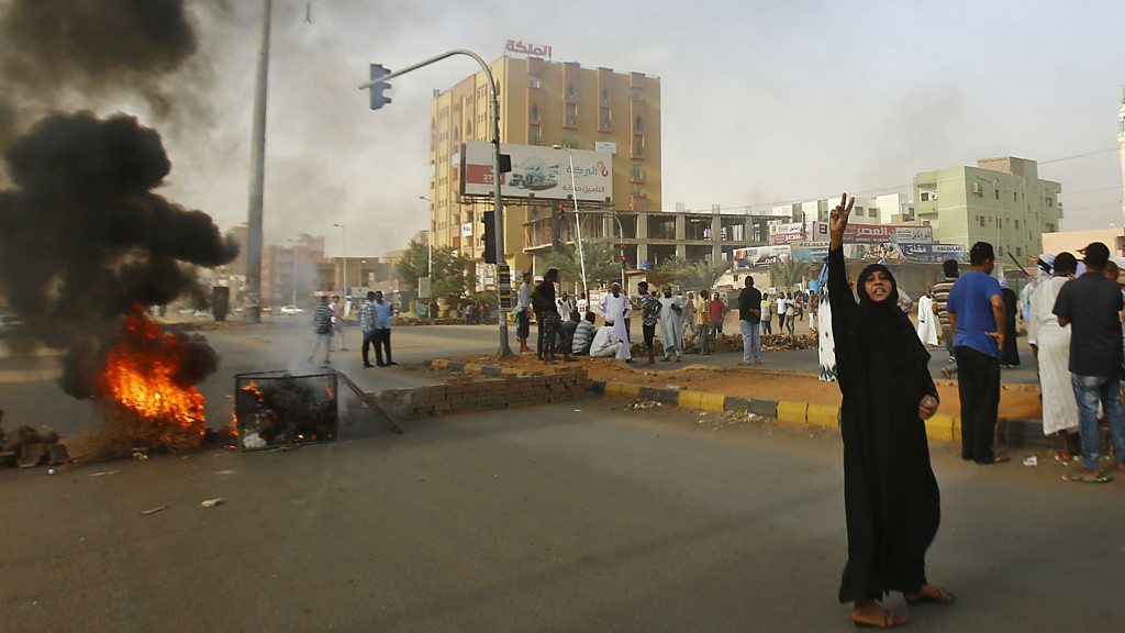 Sudan's military rulers have decided to cancel their agreement with protesters and will hold elections within nine months. The protesters had wanted a longer transition to civilian rule. The statement comes hours after the bloodiest day in Khartoum since protests began in December last year. At least 30 people were killed when security forces opened fire on unarmed protesters. Newsday's Lawrence Pollard spoke to Rosalind Marsden, the former British ambassador to Sudan. (Photo: A Sudanese protester flashes the V sign for victory outside Khartoum's army headquarters Monday 3rd June 2019 Credit: Ashraf Shazly/AFP/Getty Images)